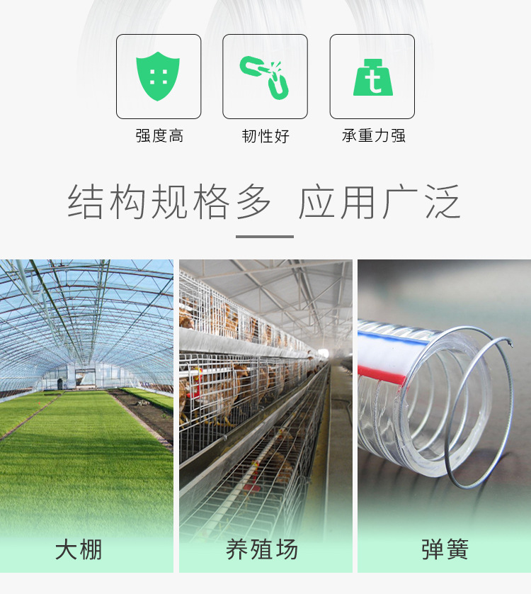 主要用于種植大棚,養殖場,棉花打包,彈簧及鋼絞線、鋼絲繩的制造