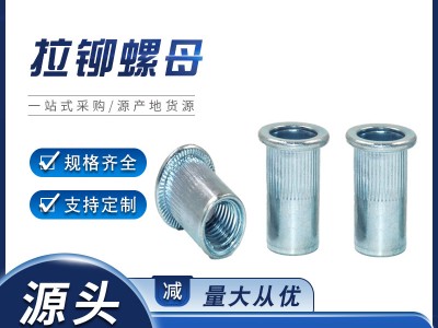 鍍鋅拉鉚螺母平頭拉母六角鉚釘沉頭鋁型材滾花豎紋不銹鋼鉚螺母