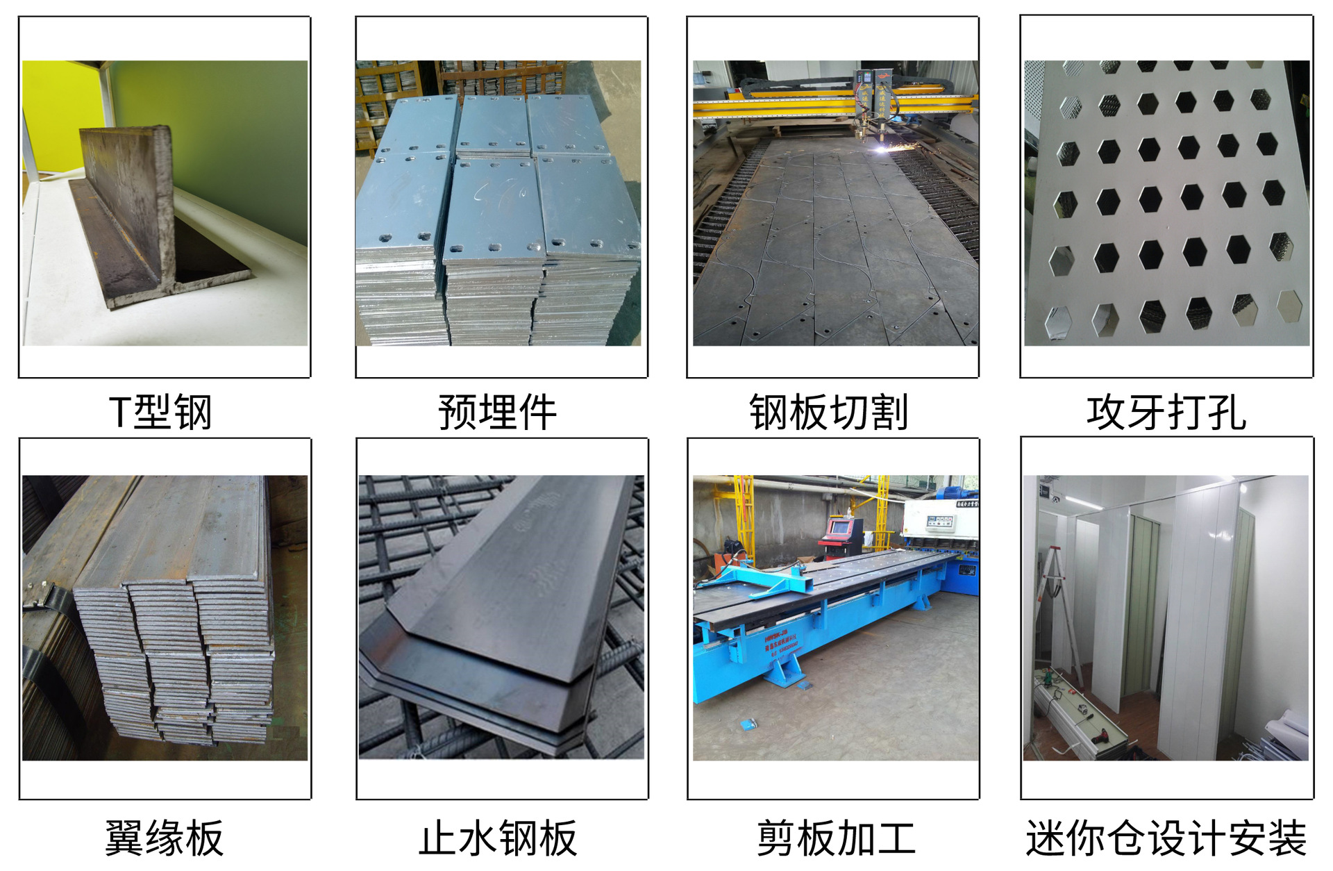 剪、割、鋸、沖、鉆、銑、平、儲(chǔ)等深加工業(yè)務(wù)。新增迷你倉設(shè)計(jì)、迷你倉安裝、迷你倉