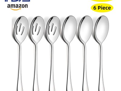 不銹鋼餐具公用勺公用漏6PCS套裝跨境亞馬遜服務勺服務漏