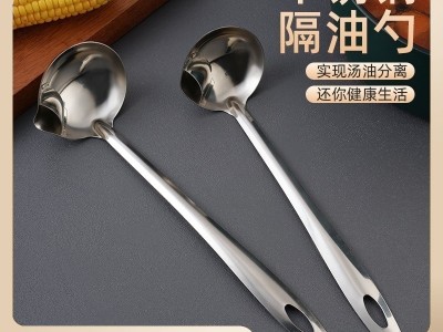 不銹鋼隔油勺 瀝油濾油湯勺家用長柄火鍋湯勺去油漏油油湯分離器