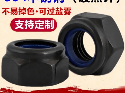 黑色304不銹鋼防松螺母M3M4M5M6M8DIN985鍍黑鋅六角 尼龍鎖緊螺帽