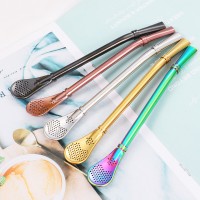 304不銹鋼吸管馬黛茶吸管勺創意咖啡勺西式攪拌過濾勺果汁勺鍍金