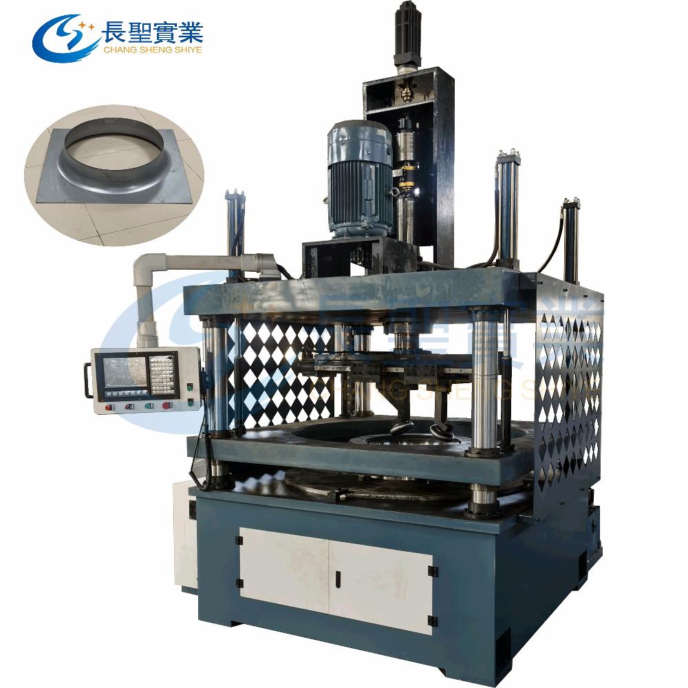 設備特點:數控內旋旋壓機主要用于空調通風機進風口加強板的內孔旋壓成型。主要特點是板材固定不動,旋壓輪在板材內部進行旋壓,可在一張板上旋壓出若干孔。設備數控控制,可旋壓直邊、弧邊等復雜曲線。