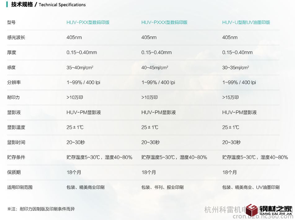 產(chǎn)品參數(shù) HUV系列UV印版