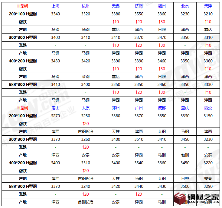 全國14個主要市場200*100 H型鋼平均價格3321元/噸,較上個交易日上調(diào)7元/噸。