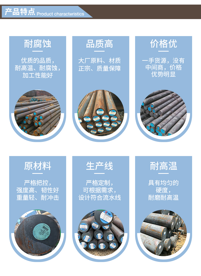 天津中誠鋼鐵主要以現(xiàn)貨的形式經(jīng)營全國各大鋼廠生產(chǎn)的圓鋼、合金鋼、模具鋼、工具鋼。可為用戶加工生產(chǎn)材質(zhì)型號熱軋圓鋼及冷拉圓鋼。并可長期現(xiàn)貨供應(yīng)各種規(guī)格熱軋圓鋼、冷拉圓鋼及常年所代理公司的各種規(guī)格圓鋼。我公司還加工各種冷拔熱軋圓鋼。可根據(jù)客戶需要的材質(zhì)、規(guī)格加工成不同的尺寸!并可定做各種材質(zhì)各種規(guī)格的非標(biāo)圓鋼!