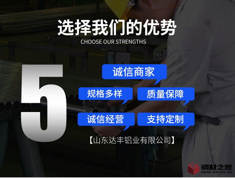 山東達豐鋁業有限公司 經銷批發的鋁板、鋁卷、花紋鋁板、彩涂鋁卷、鋁瓦、鋁圓片、橘皮鋁卷,在消費者當中享有較高的位置,公司與多家零售商和代理商建立了長期穩定的關系。山東達豐鋁業有限公司經銷的鋁板、鋁卷、花紋鋁板、彩涂鋁卷、鋁瓦、鋁圓片、橘皮鋁卷品種多樣、價格合理。山東達豐鋁業有限公司實力雄厚,重信用、守合同、保障產品質量,以多品種經營特色和薄利多銷的原則,獲得了廣大客戶的信任。