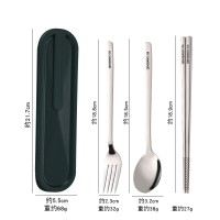 316L不銹鋼筷子 勺叉全鋼三件套創意學生一人食盒裝 便攜餐具套裝